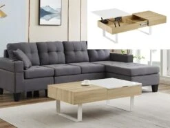 Table Basse Avec Plateau Relevable Et 1 Tiroir – MDF Et Acier – Naturel Et Blanc – BALUN