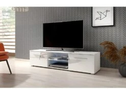 Meuble TV Suspendu Design SPEED, 160 Cm, 1 Porte, Coloris Blanc Et Gris Avec LED Intégrée.
