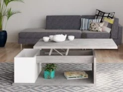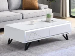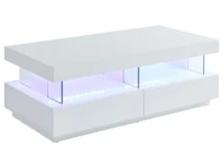 Table Basse 2 Tiroirs Et 2 Niches Avec LEDs – MDF Et Verre Trempé – Blanc Laqué – FABIO II