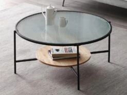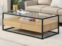 Table Basse Avec LED + Compartiments + Plateau Extensible – Style Moderne – Naturel & Noir