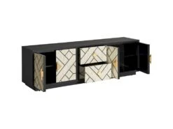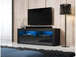 Meuble TV Design MANHATTAN XL, 160 Cm à 2 Portes Et 2 Niches Coloris Noir Mat Et Noir Brillant + Led