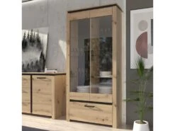 Le look est considérablement influencé par la belle structure en bois et le mélange de portes en verre. La combinaison de couleurs transparaît pour apporter un élément naturel dans son environnement et le meuble lui-même est plein de charme douillet. Des compartiments intégrés derrière les portes offrent un potentiel de rangement pratique. Le matériel de montage est inclus afin qu’il puisse être assemblé et mis en place rapidement.