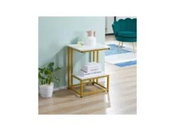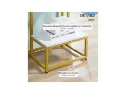 Polyvalent et élégant, le guéridon effet marbre AUGUSTUS de MYCOCOONING importe le chic dans votre intérieur. Très pratique, on peut le placer en bout de canapé afin de profiter de son plateau haut pour manger, travailler ou poser les magazines, livres ou télécommandes. Sa structure en acier est robuste et stabilise l’ensemble du guéridon. Les patins réglables permettent d’ajuster la stabilité de la table quel que soit le revêtement de sol. Avec ses deux niveaux, on peut s’en servir pour y placer des plantes vertes, comme desserte sur un balcon ou comme meuble d’appoint dans une salle de bains. Livrée en un colis, son montage est rapide.