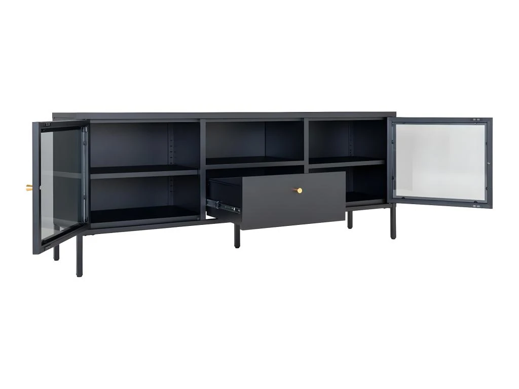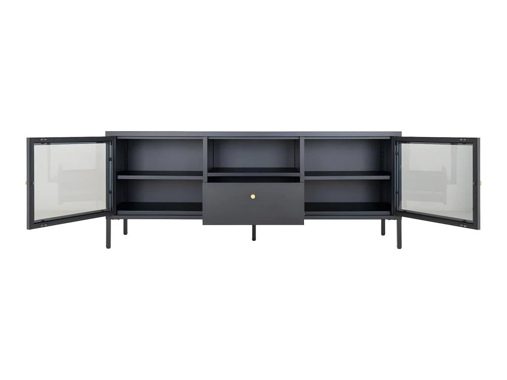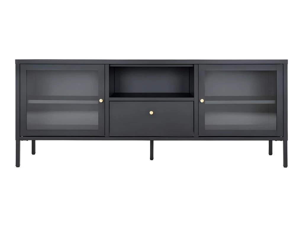 Meuble Télé Buffet Tv Télévision Design Pratique Bois D’acacia Avec Portes Sculptées 117 Cm 2502119