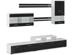 Finitions en melamine de qualite, structure de couleur blanche mate, frontaux en MDF Noirs Laques, votre salon gagnera en luminosite et contraste a la fois, ideal pour tous les styles de sejours.