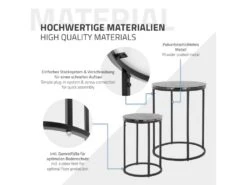 - Ensemble de 2 tables d’appoint : l’ensemble comprend deux tables d’appoint de différentes hauteurs qui s’emboîtent pour un effet ludique.