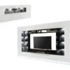 – CARACTERISTIQUES : Le bloc TV possède deux portes abattantes et une niche centrale avec une étagère en verre. Celle-ci est éclairée par un éclairage LED fournis. Une armoires suspendue possède une porte battante vitrée sur toute la hauteur. 3 étagères sont présentes dans chaque armoires. L’armoire vitrée possède des éclairages LEDS intégrés. Toutes les portes de cette composition s’ouvrent à l’aide du système « push to open ». Les étagères vous permettront d’exposer vos plus beaux objets déco.