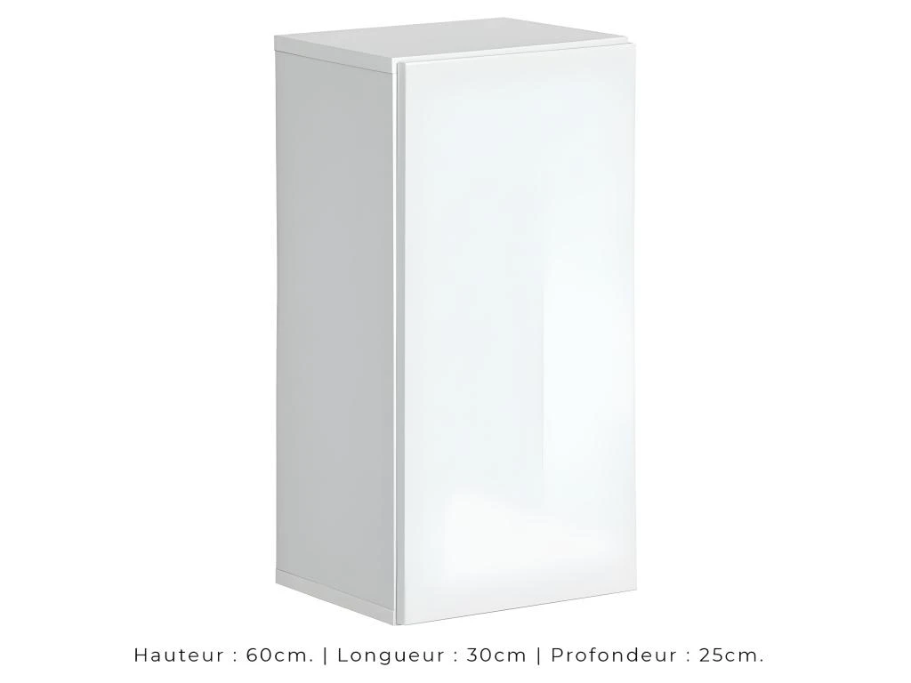 * Meuble suspendu (x2) : L 30 x H 60 x P 25 cm.