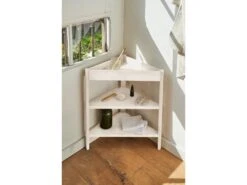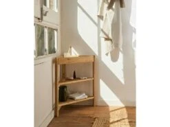 Étagère d’angle fabriquée de façon artisanale à partir de bois provenant de sources durables.