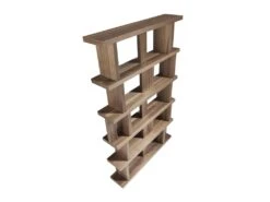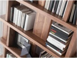 Bibliothèque au design moderne avec des étagères irrégulières en placage de noyer naturel de 0,5 mm d’épaisseur. Une bibliothèque au design très original parfaite pour apporter la touche de chaleur et de style que vous recherchez dans votre intérieur et tout garder en ordre