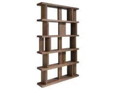 Bibliothèque au design moderne avec des étagères irrégulières en placage de noyer naturel de 0,5 mm d’épaisseur. Une bibliothèque au design très original parfaite pour apporter la touche de chaleur et de style que vous recherchez dans votre intérieur et tout garder en ordre