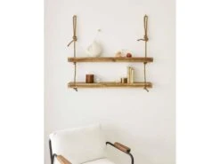 La Makemba est fabriquée à la main par nos artisans avec des matériaux soigneusement choisis. La combinaison unique de trois solides lattes de bois maintenues ensemble par une corde de jute crée un design d’étagère polyvalent qui peut s’adapter à n’importe quelle pièce de la maison, de la chambre principale à ce petit coin que vous aimez tant. Elle apporte délicatesse et personnalité, vous permettant d’ajouter vos éléments préférés à ses planches, qu’il s’agisse d’un vase en céramique avec des fleurs ou de votre œuvre d’art préférée. Vous pouvez également la personnaliser en choisissant le nombre d’étagères et votre finition préférée.