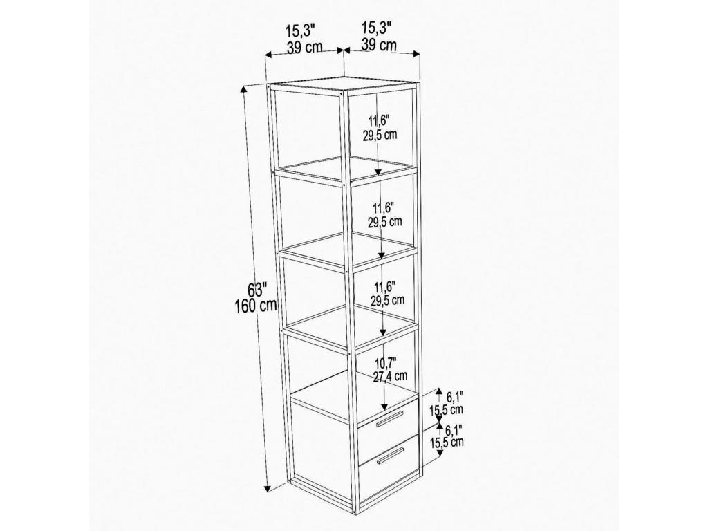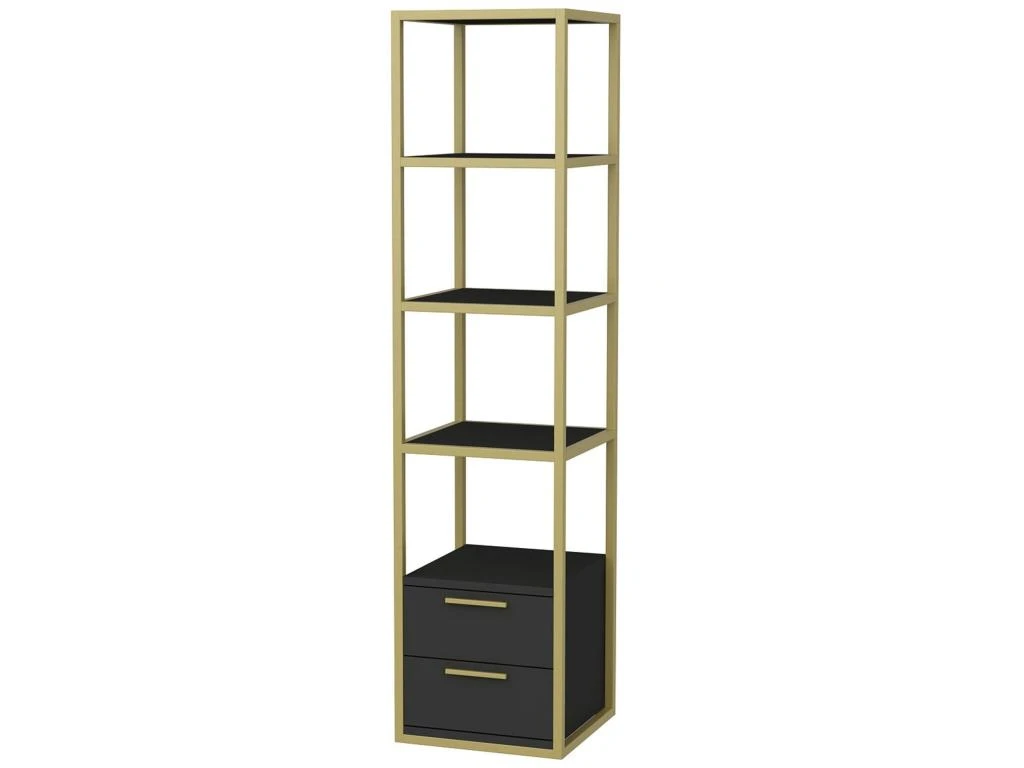 ALIDA – Étagère Marron 2 Tiroirs Et 7 Niches Teck Recyclé Acacia Mahogany Recyclé Et Métal Noir