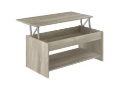 HAPPY Table basse transformable – Structure en panneaux de particules laminé chene sonoma – Style et design contemporain – Plateau relevable, étagere inférieure qui peut servir de porte-revue – 2 pieds – Fabrication européenne – Dimensions : L 100 x l 50 x H 44,6 cm.