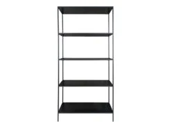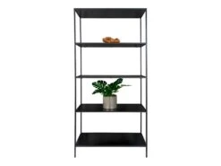 Etagère Large 5 Plateaux Acier Noir et Aspect Bois Noir Harald.
