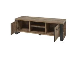 Meuble TV 2 Portes Aspect Bois et Métal Poudré Noir de la gamme Kora.