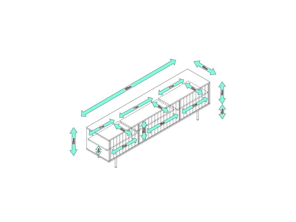 Le piétement minimaliste en métal de ce meuble audio/vidéo design supporte efficacement un corps pourvu de 3 portes au dessin graphique, chacune de ces portes libère l’ouverture de volumes de rangement confortables aptes à recevoir tout votre équipement audio/vidéo.