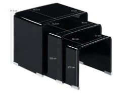 - PRODUIT : 3 tables basses gigognes en verre trempé noir ICE.