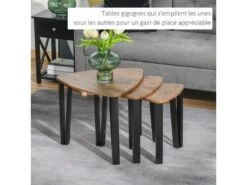 Pratiques et exotiques, les 3 tables basses Mowgli de MYCOCOONING savent se faire discrètes lorsqu’elles sont rangées puisqu’elles s’encastrent. Les 3 tailles de plateaux en bois d’aspect noyer séduisent par les courbes de leurs côtés. Ils sont supportés par des structures en métal originales qui assurent la stabilité et la solidité de l’ensemble. Légères et compactes, elles sont faciles à déplacer et peuvent aussi bien servir de table basse, de bout de canapé ou de support pour décorations. En intérieur ou extérieur, elles peuvent être également utilisées comme dessertes.