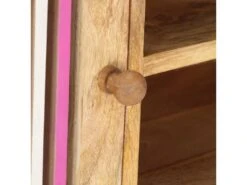 L’armoire HiFi est fabriquée en bois de manguier massif, un bois dur aux grains denses.