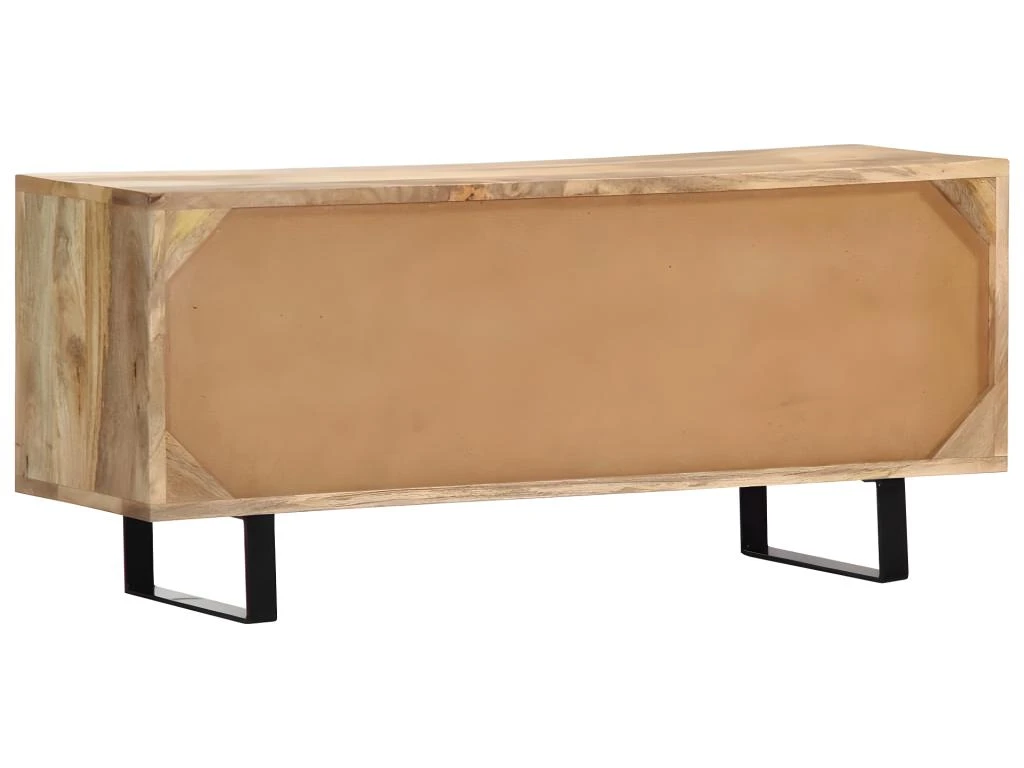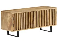 L’armoire HiFi est en bois de manguier massif, un bois dur aux grains denses.