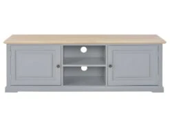 Fabriqué en MDF et en bois de Paulownia solide, ce meuble TV moderne comprend 2 portes et 2 compartiments ouverts permettant de garder divers objets tels que des appareils multimédia, des consoles de jeu, des magazines, etc.