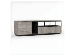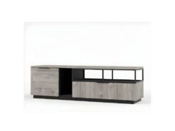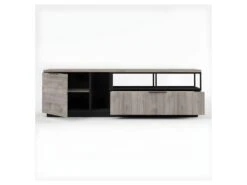 Mariant une finition teinte bois gris au rendu plus vrai que nature et des éléments en métal laqué noir ce meuble audio/vidéo à la proportion parfaite ne manquera pas de moderniser votre salon tout en se mariant avec tous les styles de mobilier.