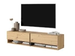 Le meuble TV Mirrgo se caractérise par une forme simple, enrichie d’une couleur tendance imitant le marbre. Grâce à un insert vertical doré au milieu de l’unité, l’ensemble est très élégant et deviendra avec succès une pièce maîtresse de la pièce. L’une des forces de ce meuble est sa capacité – 2 armoires verrouillables permettront de cacher tous les jeux de la console, les câbles supplémentaires ou d’autres petits objets pour lesquels il n’y a généralement pas assez de place dans la pièce. Les 2 étagères ouvertes placées en dessous seront une cachette parfaite pour un décodeur, une console ou un livre en cours de lecture.