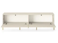 La forme classique est enrichie d’une façade fraisée très tendance, qui confère à l’ensemble un caractère unique. L’avantage de ce meuble réside dans ses pieds étroits et hauts en acier thermolaqué – grâce à eux, le meuble gagne non seulement en légèreté visuelle, mais aussi en stabilité. En outre, une telle solution facilitera le maintien de la propreté sous les meubles. L’intérieur du Lammelo a été divisé en deux grandes niches, ce qui vous permettra de loger facilement les accessoires et bibelots nécessaires.