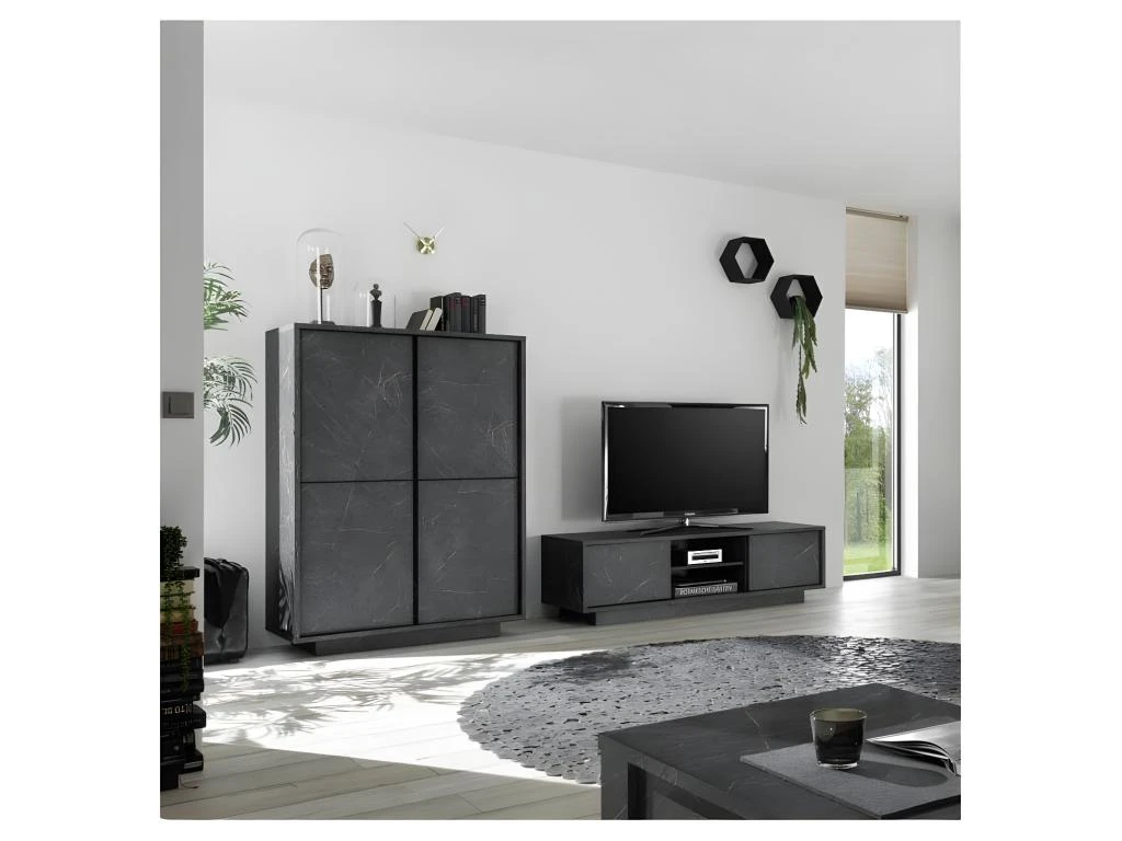 Réalisez un salon à la signature visuelle exclusive avec ce meuble TV 2 portes 2 niches au look exceptionnel.