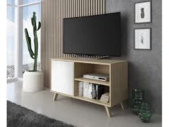 Idéal pour réaliser une mise en ambiance digne d’une revue de décoration ce meuble multimédia à la très belle qualité perçue sait aussi être logeable et facile à assortir avec du mobilier contemporain.