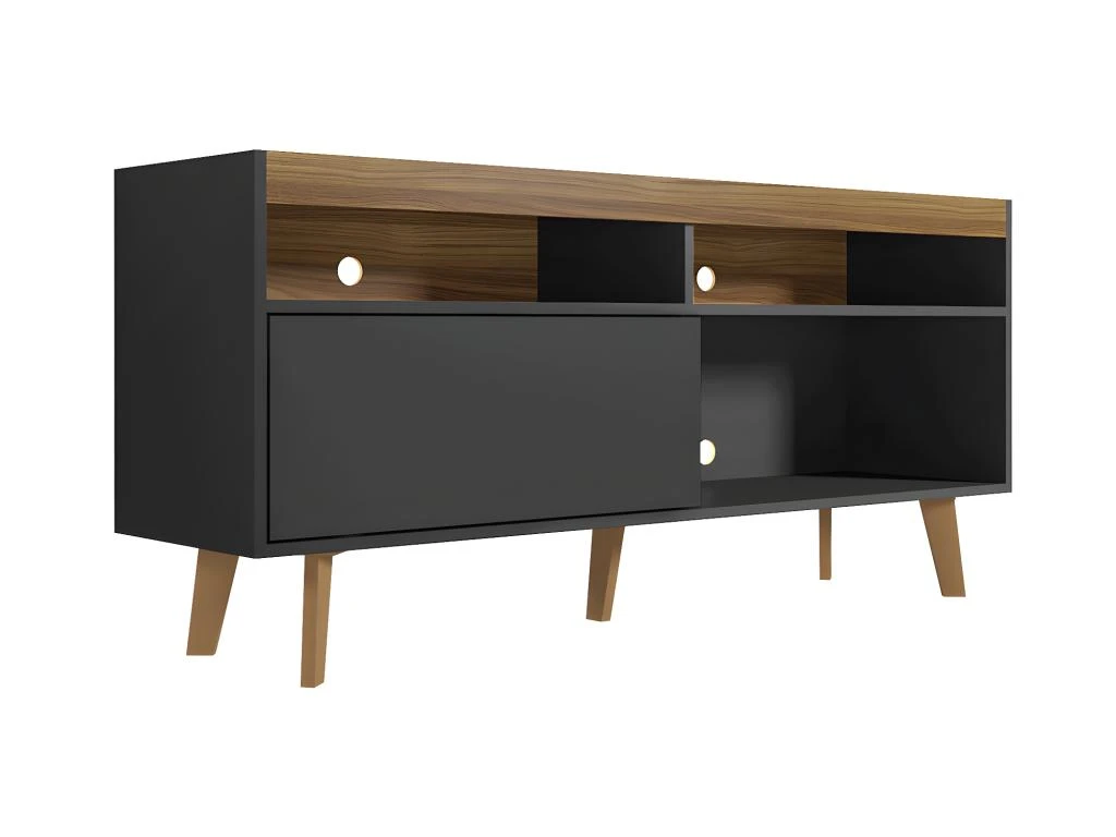 Slavia , Meuble TV Rectangulaire, Deux Portes, En Panneaux , Bois De Mindi Et Loom , Noir Et Naturel