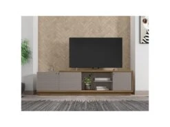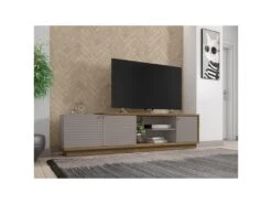 Meuble TV LAS VEGAS 195 cm pour TV 75 pouces Maxi. 3 Portes. Coloris Chêne et Taupe