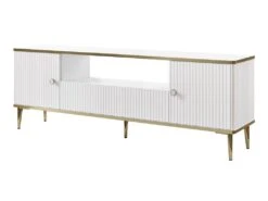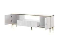 Le meuble TV SINEAD est le meuble idéal pour créer une ambiance sobre et distinguée dans votre séjour. Sa façade tout en relief et ses pieds et contours dorés sont gage de raffinement. Grâce à son tiroir, ses 2 portes et sa niche, vous organiserez facilement votre pièce.