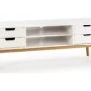 – Meuble TV bas sur pieds inclinés effilés style scandinave idéal pour ajouter une touche d’élégance supplémentaire à votre intérieur