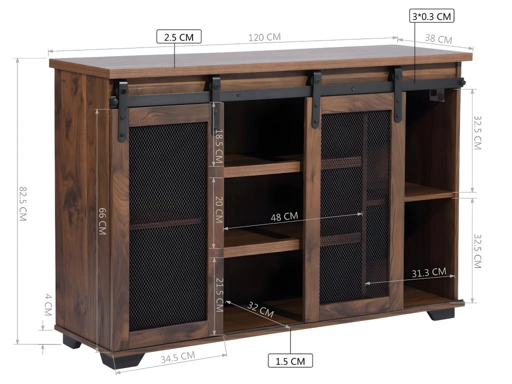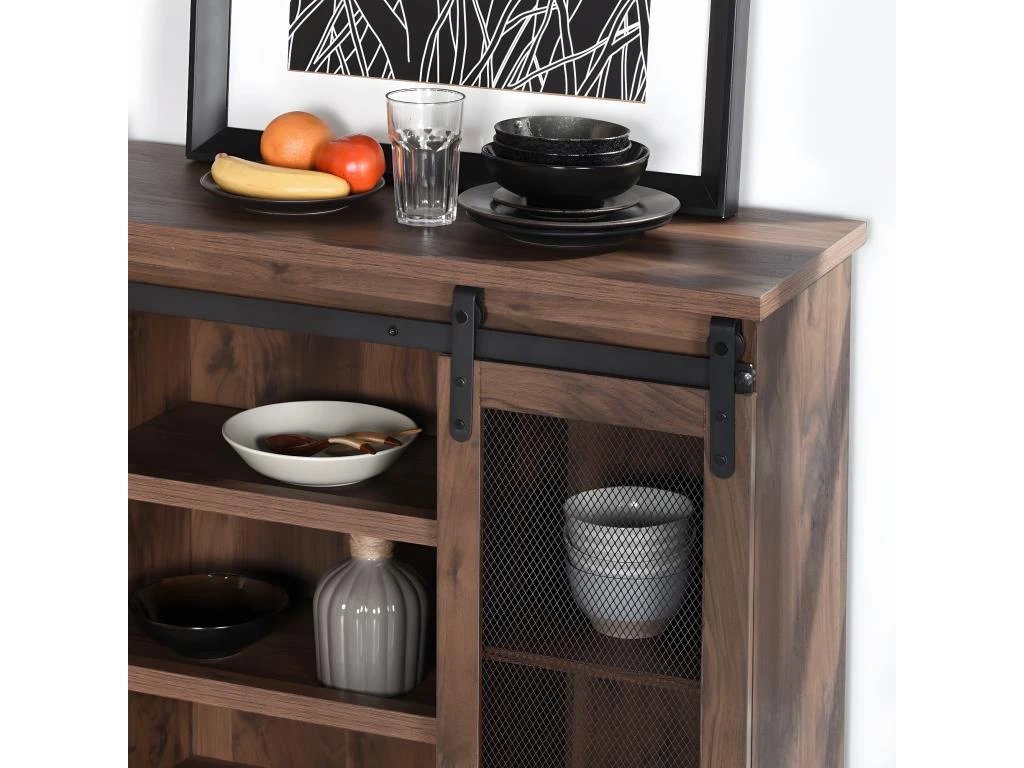 Ce superbe meuble TV a été conçu dans un souci de praticité et de fiabilité. Construction en bois massif, poignées en métal rustique, panneau supérieur épais et étagère de soutien en font un ajout vraiment idéal à votre espace de vie.