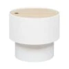 Table à café en métal blanc et plateau en Bois H 30.5 cm – Dimensions : D. 38 x P. 30,5 cm –