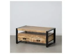 Mettez en scène une déco tendance mobilier Industriel dans votre salon avec cette table basse 2 tiroirs 1 niche réalisée en bois de Manguier.
