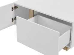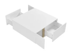 Optez pour la table QUINCY, une table multi rangements avec un design ultra-moderne. Petit plus, les néons placés sous la table apporteront une ambiance futuriste lorsque vous regarderez vos films le soir.