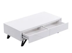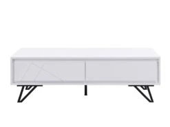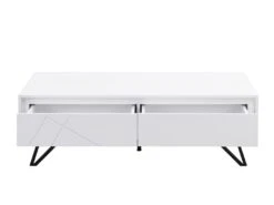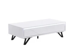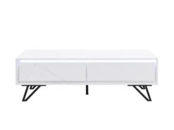 La table basse SALIANO sera idéale pour illuminer votre intérieur grâce à ses LEDs à la fois élégantes et subtiles. Son style contemporain est sublimé par des lignes géométriques, apportant une légère touche d’originalité. De plus, son piètement noir crée un contraste avec son coloris blanc laqué. Enfin, elle pourra accueillir vos divers objets dans ses 2 tiroirs.