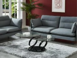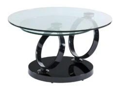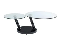 Véritable pièce d’architecte avec ses lignes arrondies et ses pieds en forme d’anneaux, cette table basse en verre trempé et acier poli inoxydable change de look grâce à ses plateaux pivotants. Son design aérien sera du plus bel effet dans votre intérieur !