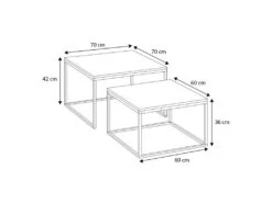 • Grande table : 70x70x42cm, petite table : 60x60x36cm