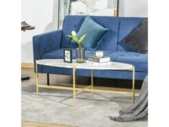 Très élégante dans un style art déco, cette table basse Michal de MYCOCOONING va apporter beaucoup de caractère à votre intérieur. C’est une subtile alliance entre la forme singulière ovale, les lignes épurées, l’aspect noble du marbre et la richesse du doré. Dans un salon, son grand plateau permet de partager un verre entre amis ou d’y déposer un objet de décoration, des livres ou les télécommandes. Les matériaux utilisés sont de première qualité comme le châssis en métal. Les patins antidérapants gardent la table basse en place sans risque d’abîmer les sols. L’entretien est facile et elle pourra facilement traverser les années sans s’abîmer.