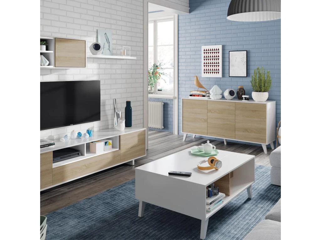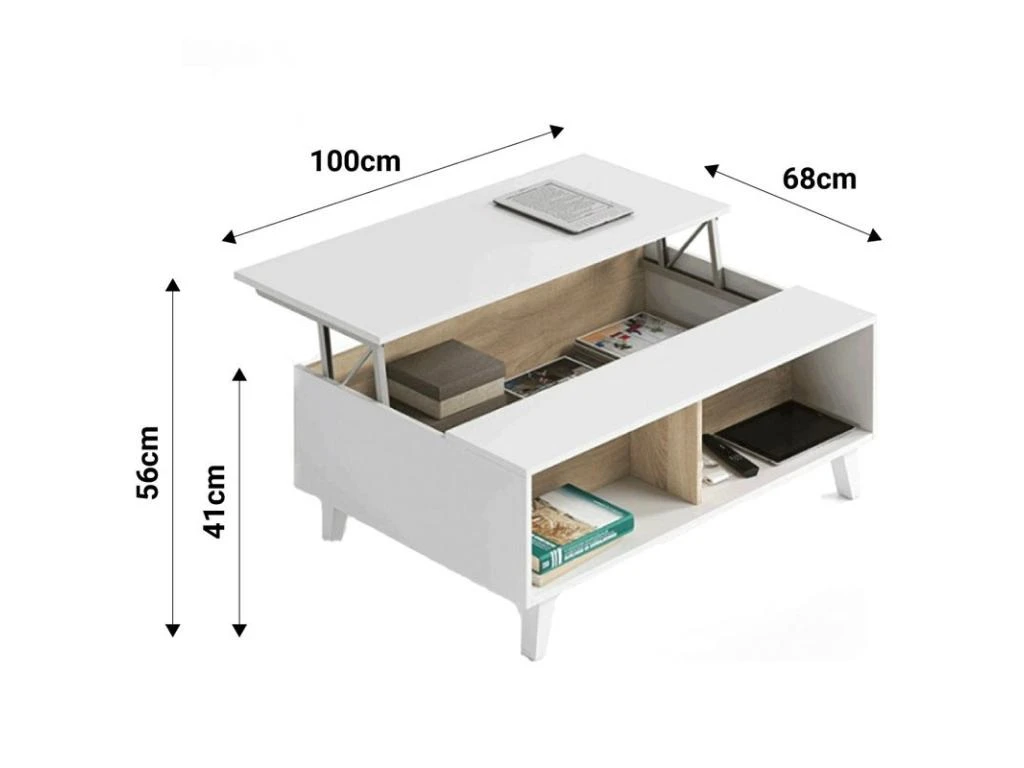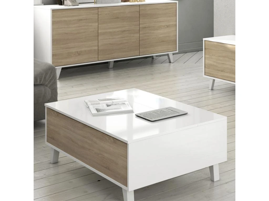 Table Basse FLAVIAN Coffre De Rangements Pivotant – MDF Blanc Laqué Et Plateau Effet Béton