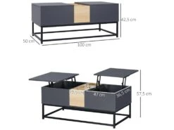 – Dim. étagères (de haut en bas) : 97L x 65l x 3H cm, 97L x 58.5l x 2.5H cm