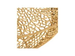 Une grande table basse ronde en aluminium doré avec un motif corail.