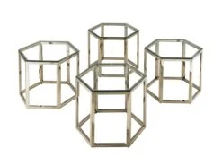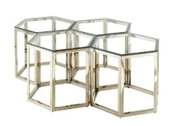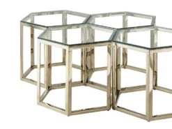 Avec son plateau hexagonal en verre trempé allié à son piètement en acier chromé ou doré, la table basse GALADRIEL apportera modernité et originalité à votre intérieur.