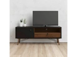 Table Rye TV 1 porte, 1 tiroir, noir mat, finition noyer. Obtenez des meubles de bonne qualité, confortables, conçus dans un design élégant et moderne. Nos meubles sont vendus à des prix vraiment très attractifs et compétitifs. Créez un intérieur qui vous ressemble, en créant un style qui vous est propre grâce à de nouveaux meubles. Combinez vos meubles avec d’autres éléments et accessoires pour créer une athmosphère chic et à la mode. Soyez toujours au goût du jour en matière d’habitat, et suivez les dernières tendances telles que présentées dans les revues et les magazines. Chez nous, vous trouverez des modèles de meubles et de décoration d’intérieur absolument uniques, chics et ultra confortables. Tous nos meubles offrent un design tendance.