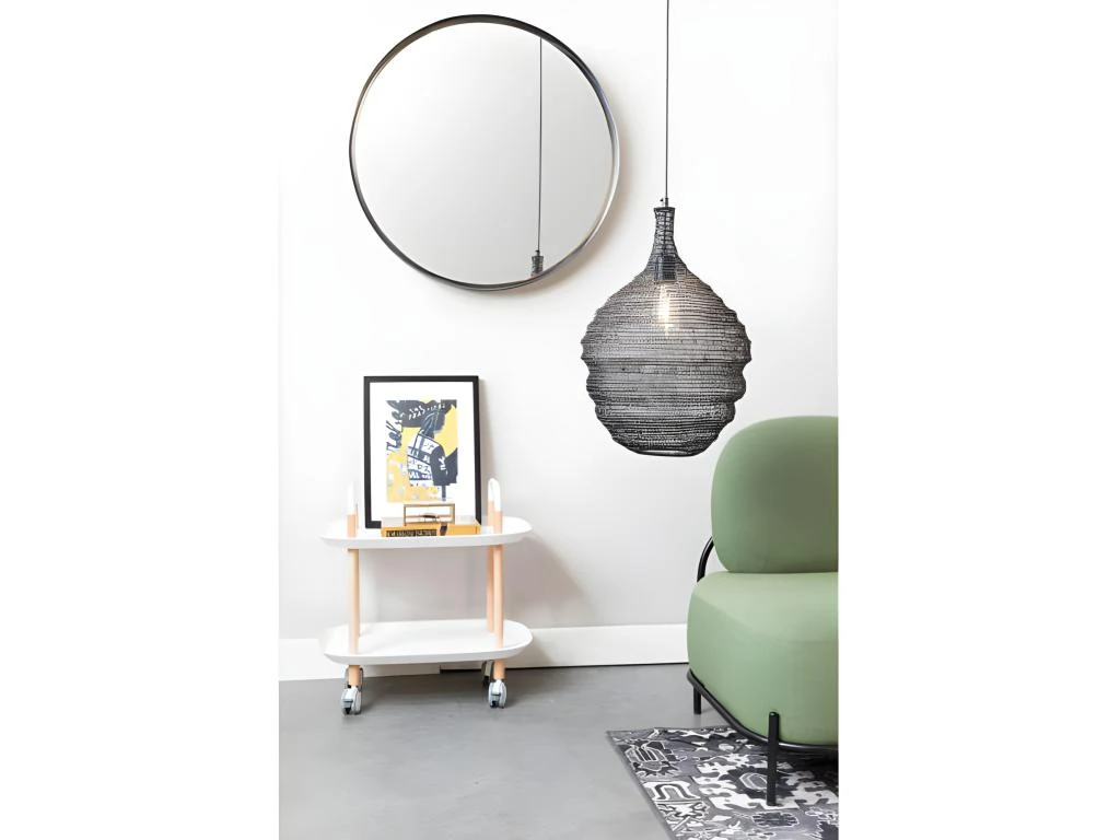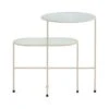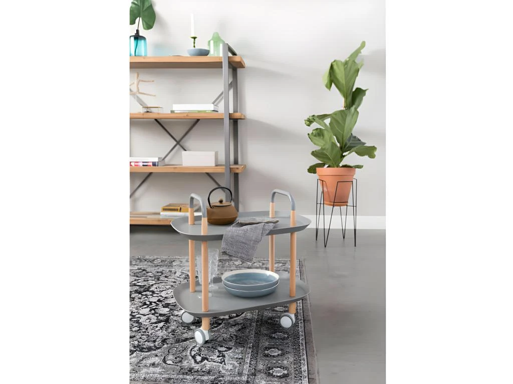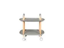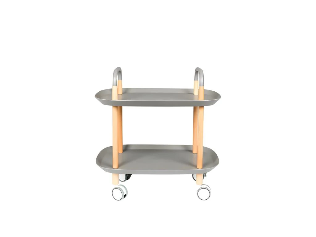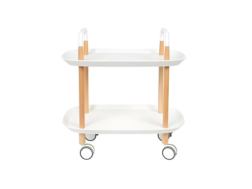 Petite table d’appoint ou de service sur roulettes, avec 2 plateaux superposés.