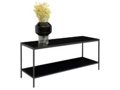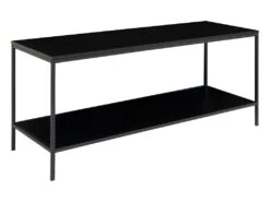 Ce meuble bi-matière rectangulaire est fabriqué en bois teinte naturelle ou noir et métal noir, avec deux étagères. Il mesure 100 x 36 x 45 cm et son design conviendra à toutes les décorations. Très pratique, il se fait aussi discret pour ne pas encombrer la pièce de vie. Vous pourrez poser une petite télé sur le plateau haut, ou si votre grand écran est fixé au mur du salon, vous pouvez installer consoles de jeux, matériel hifi et autres objets sur le meuble.
